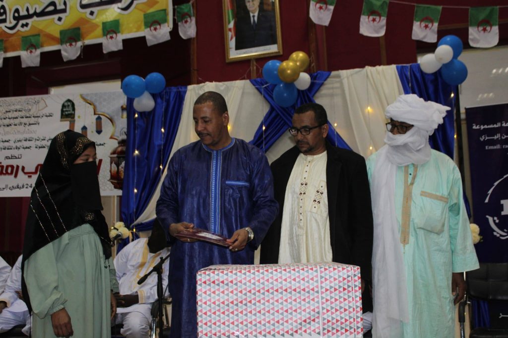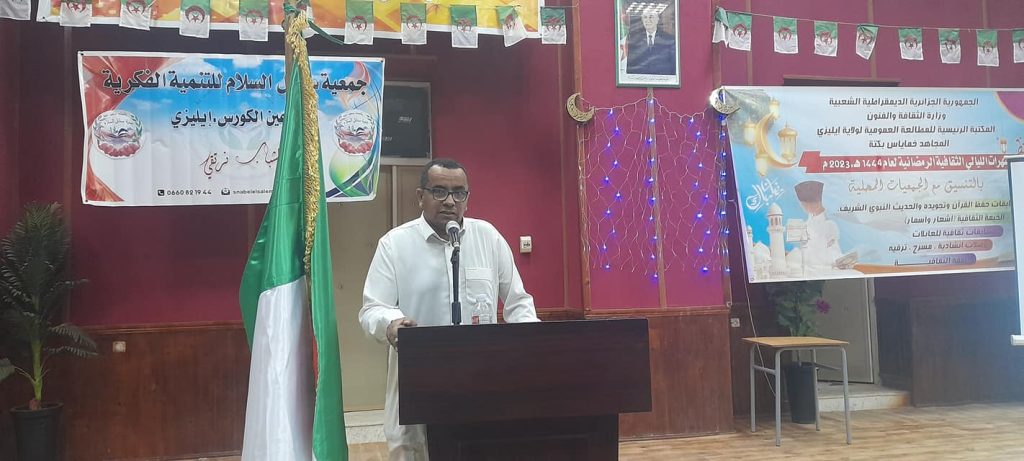 إختتاما لفعاليات إحياء لليالي رمضان الفضيل لسنة 2026 نظمت المكتبة الرئيسية للمطالعة العمومية خماياس بكتة إيليزي بالتنسيق مع التكتل الجمعوي يوم الاحد 15 مارس 2026 حفل الختامي للنشاطات الرمضانية حيث تخلل الحفل مايلي: – وصلة إنشادية “فرشات الطاسيلي” – تكريم براعم الإيمان “الحفظ والاحاديث النبوية” – وصلات إنشادية لجمعية بشائر الطاسيلي. – تكريم العائلات الفائزة …