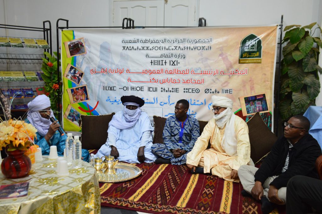 مقتطفات من النشاطات الثقافية والفنية للمكتبة الرئيسية بمناسبة الاحتفال برأس السنة الامازيغية يناير 2974 / 2024 بحضور قامات فنية من منطقة طاسيلي ناجر الفنان تافكيك أمود الذي حدث الحضور على كتابه إيزلي أمان والفنان أمود سليماني الذي قدم مداخلة على يناير في الطاسيلي نازجر